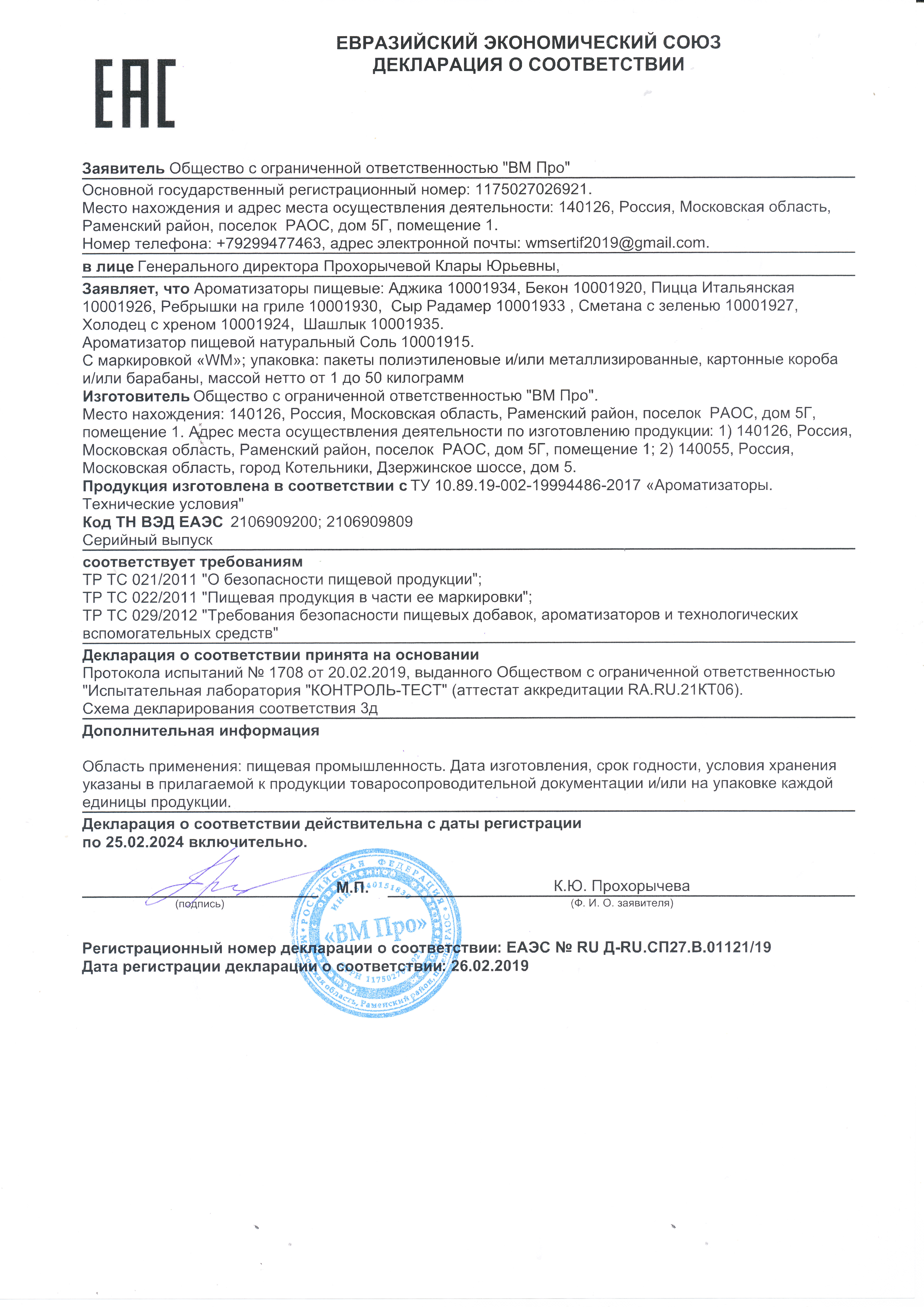 Купить Бекон ароматизатор сухой онлайн и оплатить его на нашем сайте вы можете с помощью банковской карты или денежного перевода. Качество, сохранность и своевременность доставки любого объема товаров мы гарантируем!