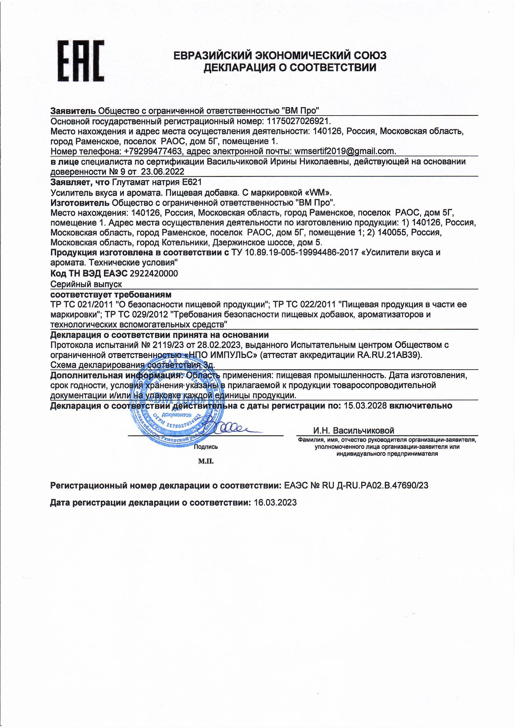Заказать Глутамат натрия крупный с доставкой по России и получить любым удобным способом вы можете на нашем сайте Оптовик. Все Усилители вкуса и аромата доступные к заказу он-лайн в наличии.