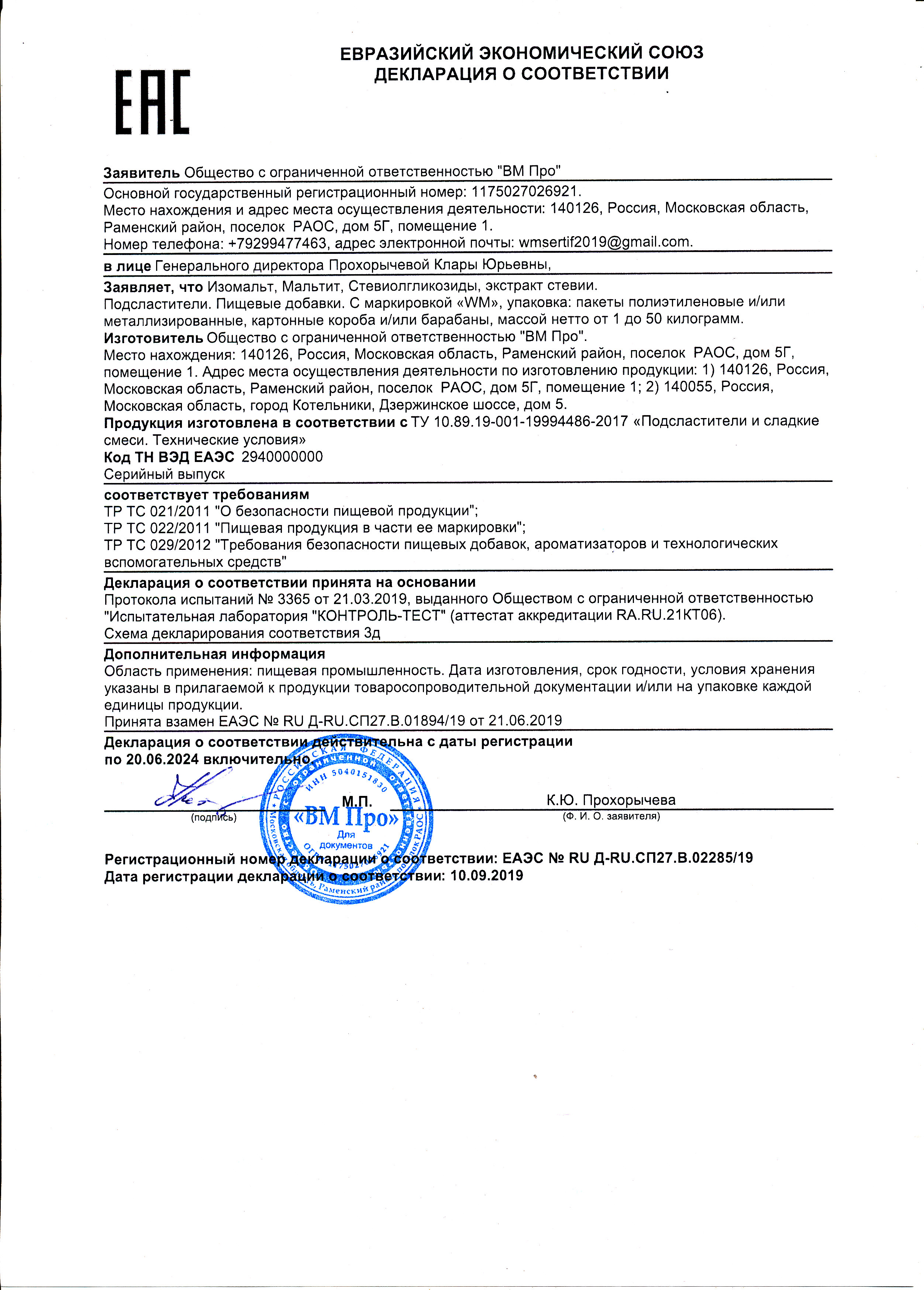 | Производитель | ВМ Про |