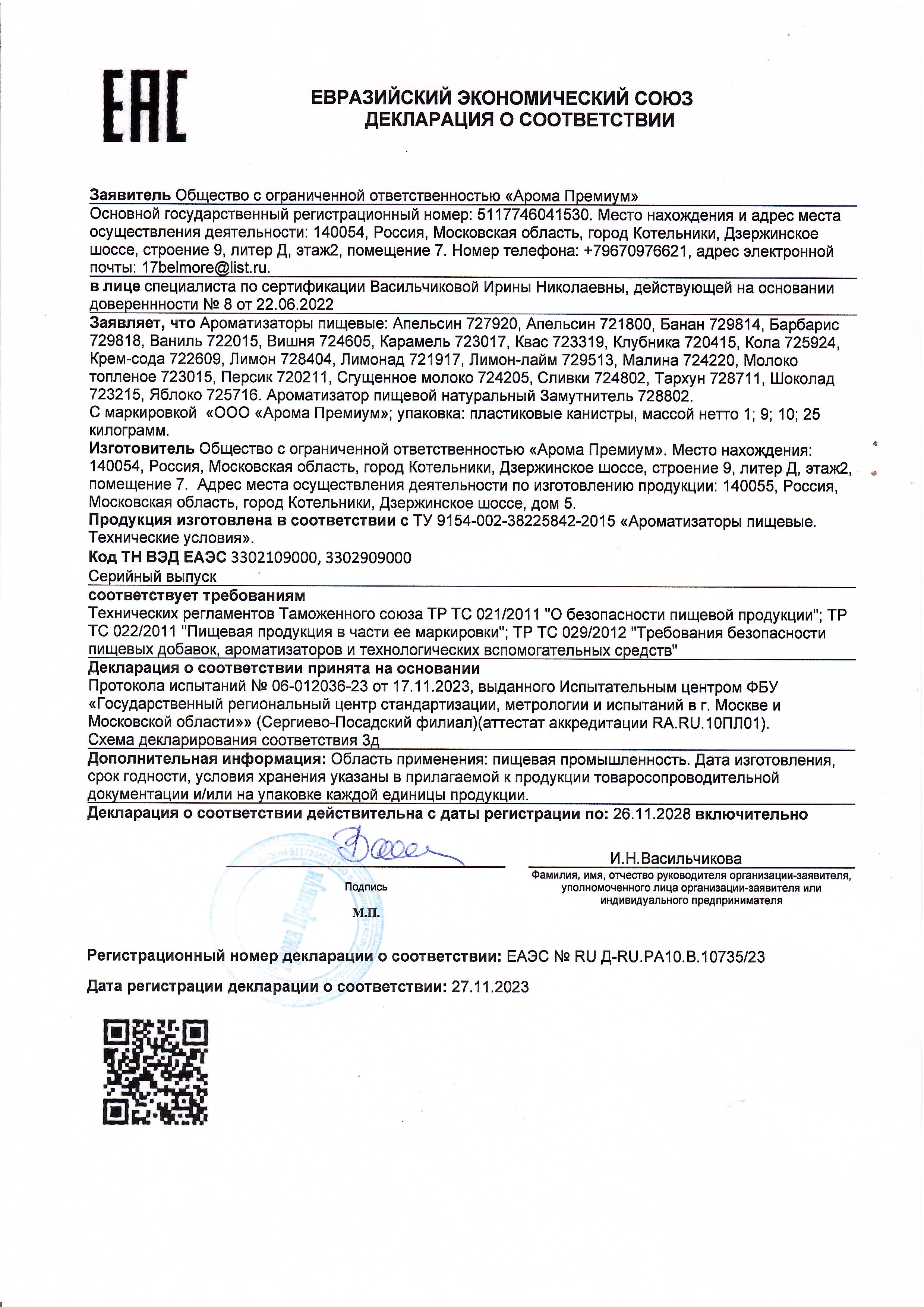 | Производитель | Арома Премиум |