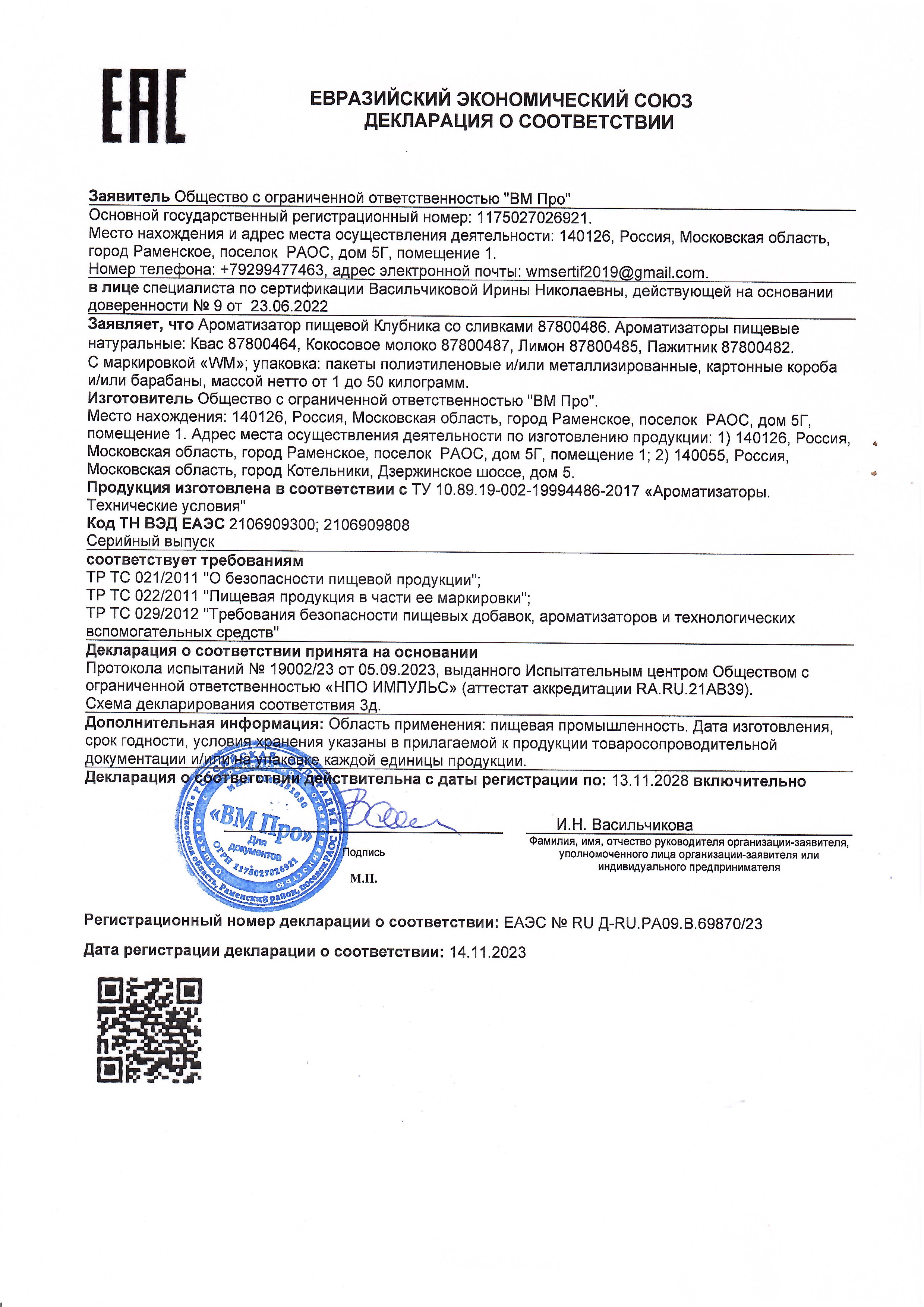 Мальтодекстрин, натуральные вкусоароматические вещества, стабилизатор Е414, носитель Е1518